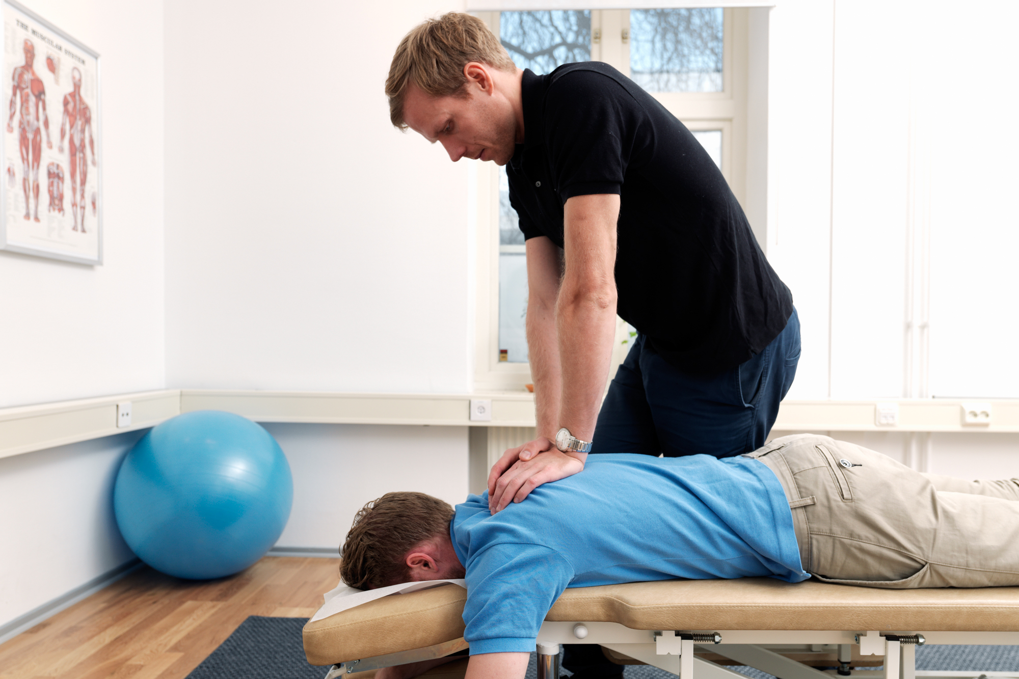 Vi börjar alltid med att lyssna och ställa frågor tills vi förstår. På första besöket går vi igenom dina besvär, undersöker hur kroppen rör sig och behandlar det som orsakar problemet. Under tiden berättar vi vad vi gör – och varför.